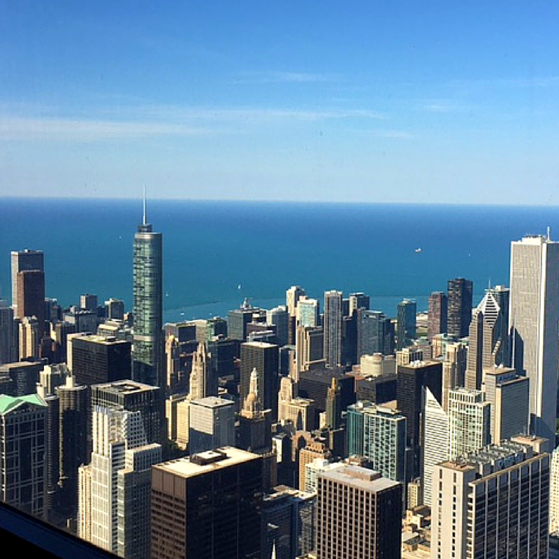 Next stop, to the top of the Willis Tower! Visiting the Skydeck on the 103rd floor and stepping out on the Ledge was definitely on my to do list. It did take almost an hour to get to the top, but there are diversions along the way like a movie as well as exhibits to help pass the time. Once there, choose to step into one of four glass boxes, where there is nothing but a thick piece of glass between your feet and the street roughly 1300 feet below. I decided to sit down and enjoy the view! The skyline of Lake Michigan on the east side and the skyscrapers on the north side of the Skydeck were stunning! What do you think?
