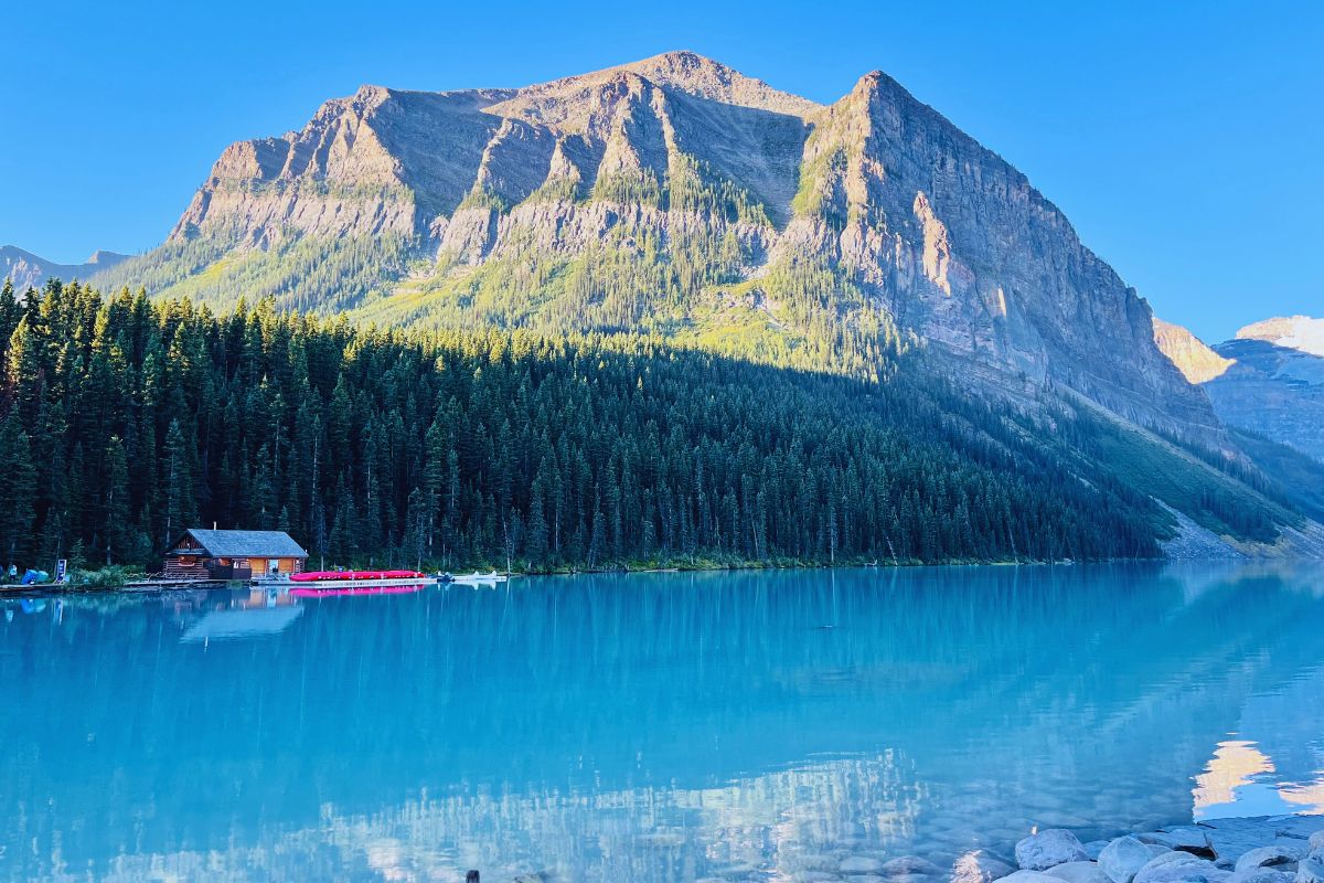 Day 6 is lake day! Get ready for jaw-dropping views as you explore Lake Louise and Moraine Lake. They truly are as beautiful as the photos on social media portray them. For 2025, visitors should plan to reserve shuttle tickets in advance through Parks Canada, Roam Public Transit, or find a private tour to reach Lake Louise and Moraine Lake. It took about 50 minutes to drive from Canmore to the shuttle parking area, where we boarded a shuttle to Lake Louise. It’s hard to describe how stunning these lakes are when you first see them. Depending on the time of day, the reflection of the sun tints the color of the water to make it even more spectacular. We visited just after Labor Day in early September, and it was still quite crowded. Just a short walk on the trail around Lake Louise will take you away from the larger crowds to enjoy peaceful views. There are other hikes including the Lake Agnes Teahouse Hike, that will give you a higher vantage point. It’s hard to leave, but at some point, board the connecting shuttle to Moraine Lake. There, you will be greeted with another gorgeous glacial lake with a color unlike any I had ever seen. Head up to the rockpile for the best view. Splurge on canoe rentals on either lake for the bucket list experience.